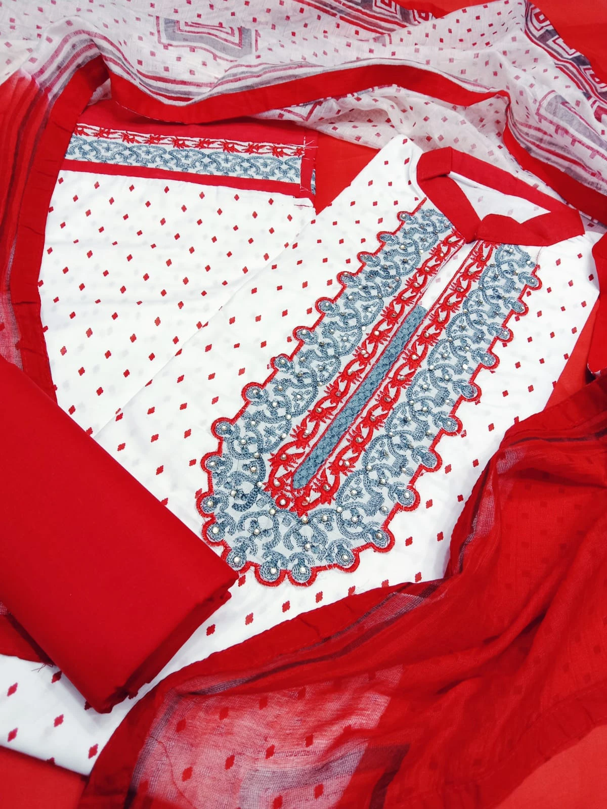 বুটিকস থ্রি পিস বুটিকস কম্পিউটার কাজ করা ওড়না লেজ দিয়ে সেলাই করা জামা লং ৪৮ ওড়না ৫ হাত সেলোয়ার আড়াই গজ |