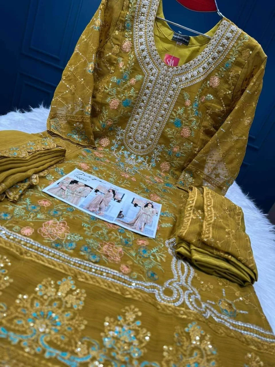 White Gold Chinon Georgette Four Piece ফোর পিস পাটি ড্রেস ফুল সিকুয়েন্স এমব্রয়ডারি করা সেলোয়ার টপেটো সিল্ক নিচে এমব্রয়ডারি করা ওড়না White Gold Chinon Georgette ৫ হাত বডি সাইজ ৩৮,৪২,৪৪ |